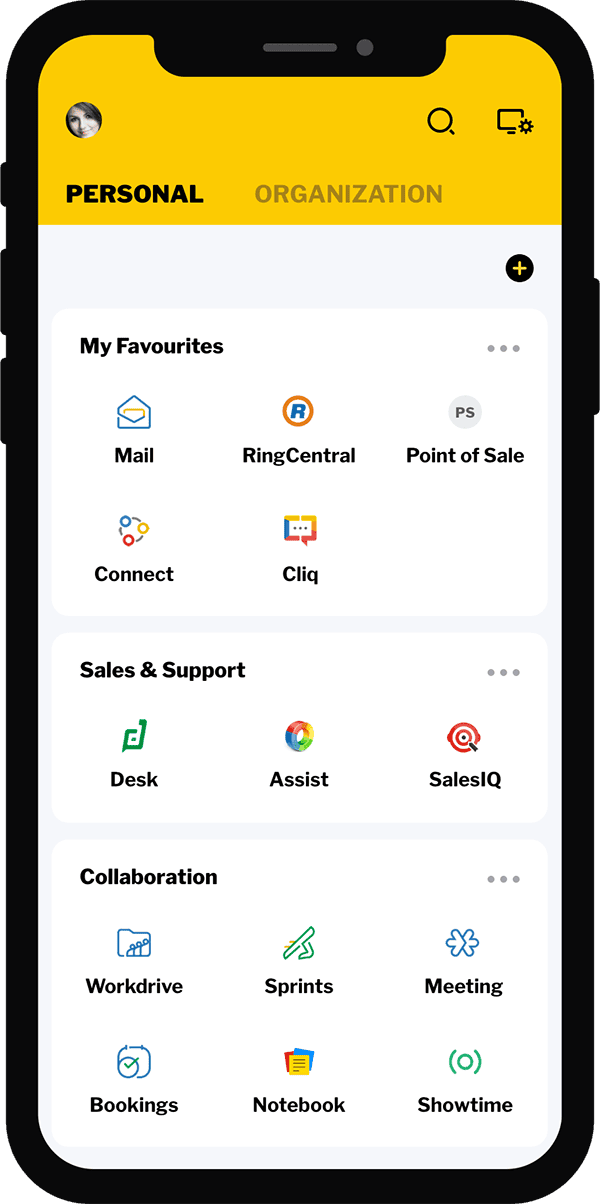 Unified Access: Easily navigate and manage tasks with a single mobile launcher, providing streamlined access to all Zoho applications.